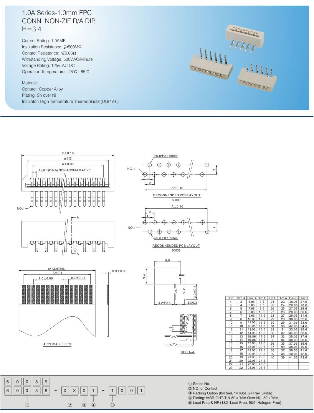 1.0A Series-1.0mm FPC