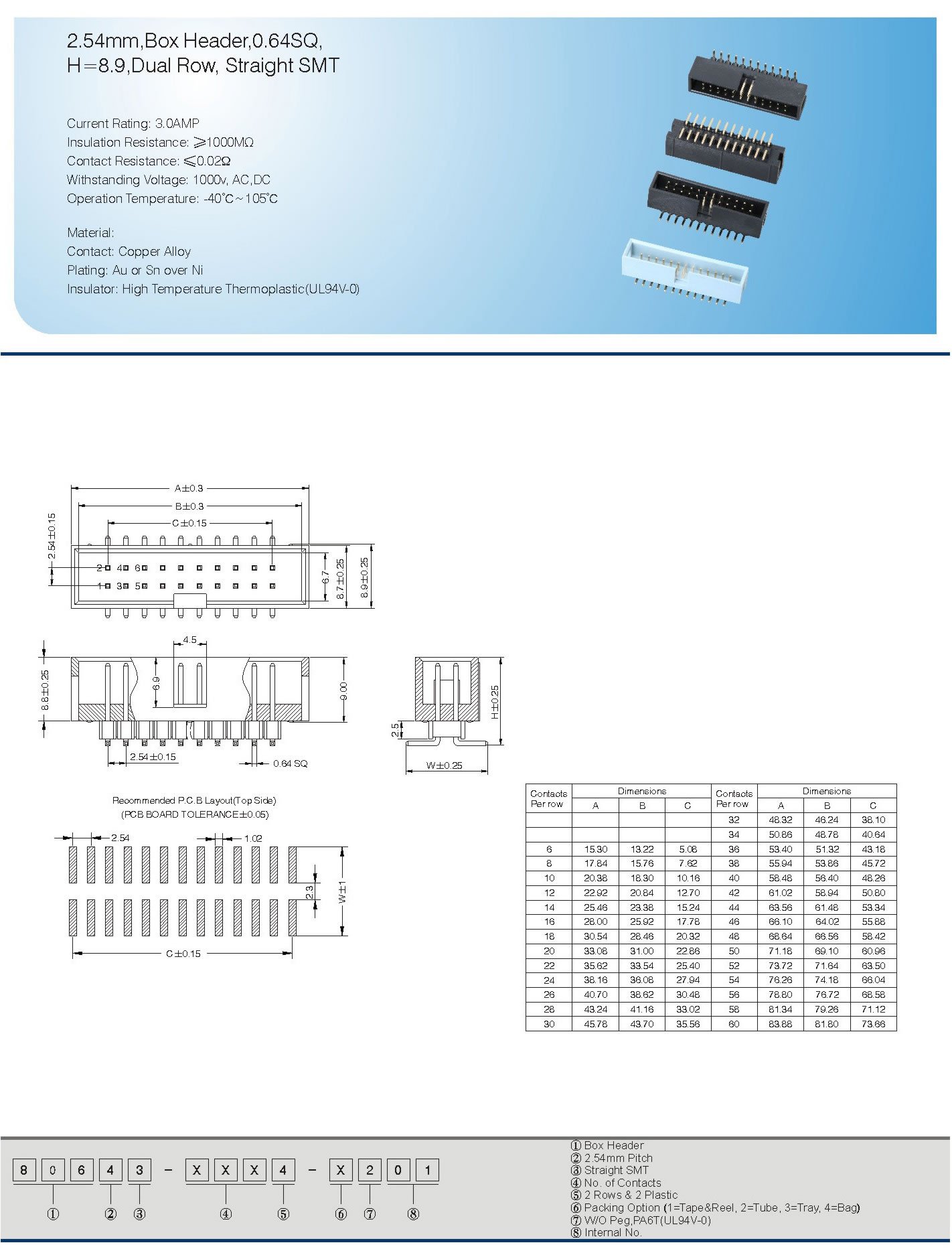 2.54mm,Box Header,0.64SQ,
