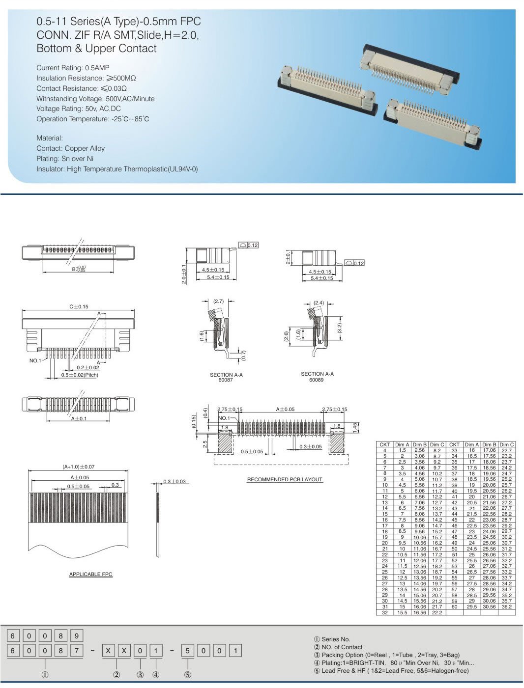 CONN.ZIF R/A SMT,Slide,H=2.0,
