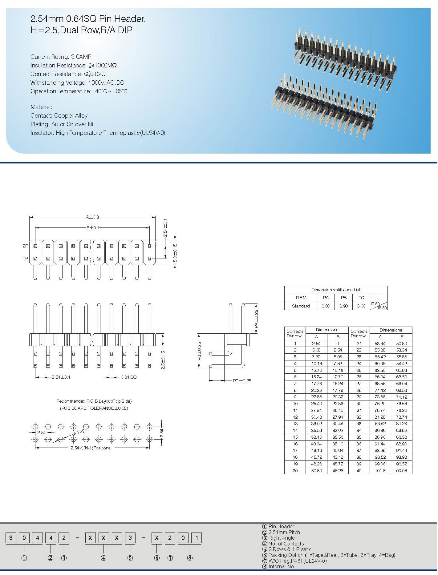 H=2.5,Dual Row,Dual Layer,R/A DIP