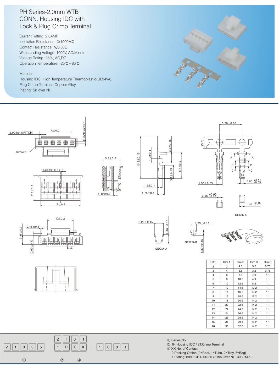 Housing IDC: High Temperature Thermoplastic(UL94V-O)