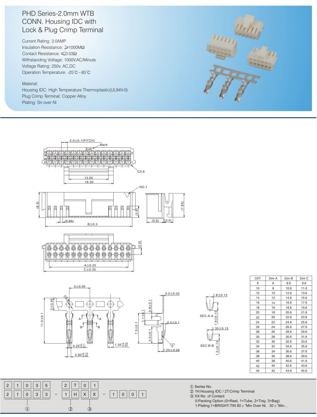 Housing IDC: High Temperature Thermoplastic(UL94V-0)