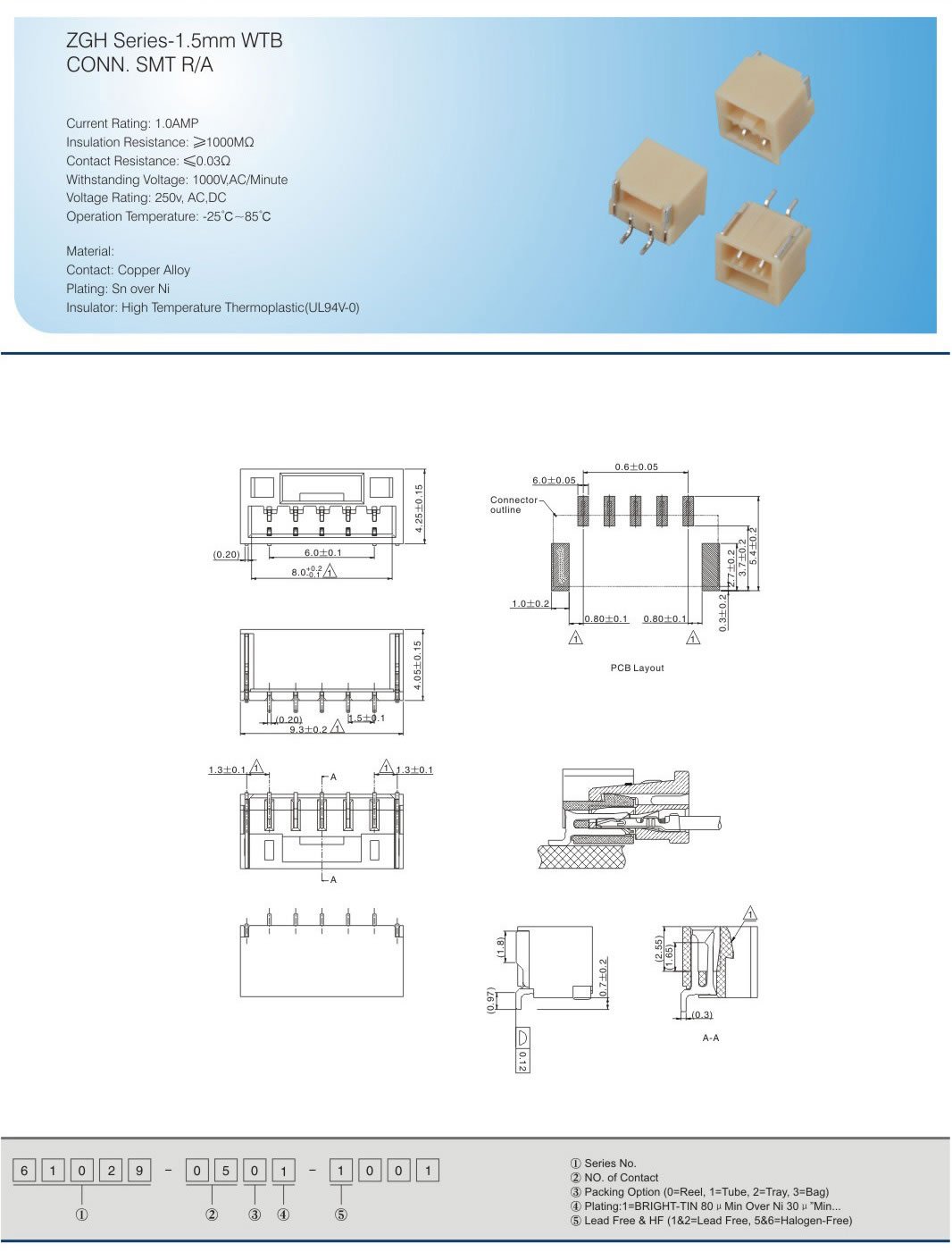 Insulator:High Temperature Thermoplastic(UL94V-O)